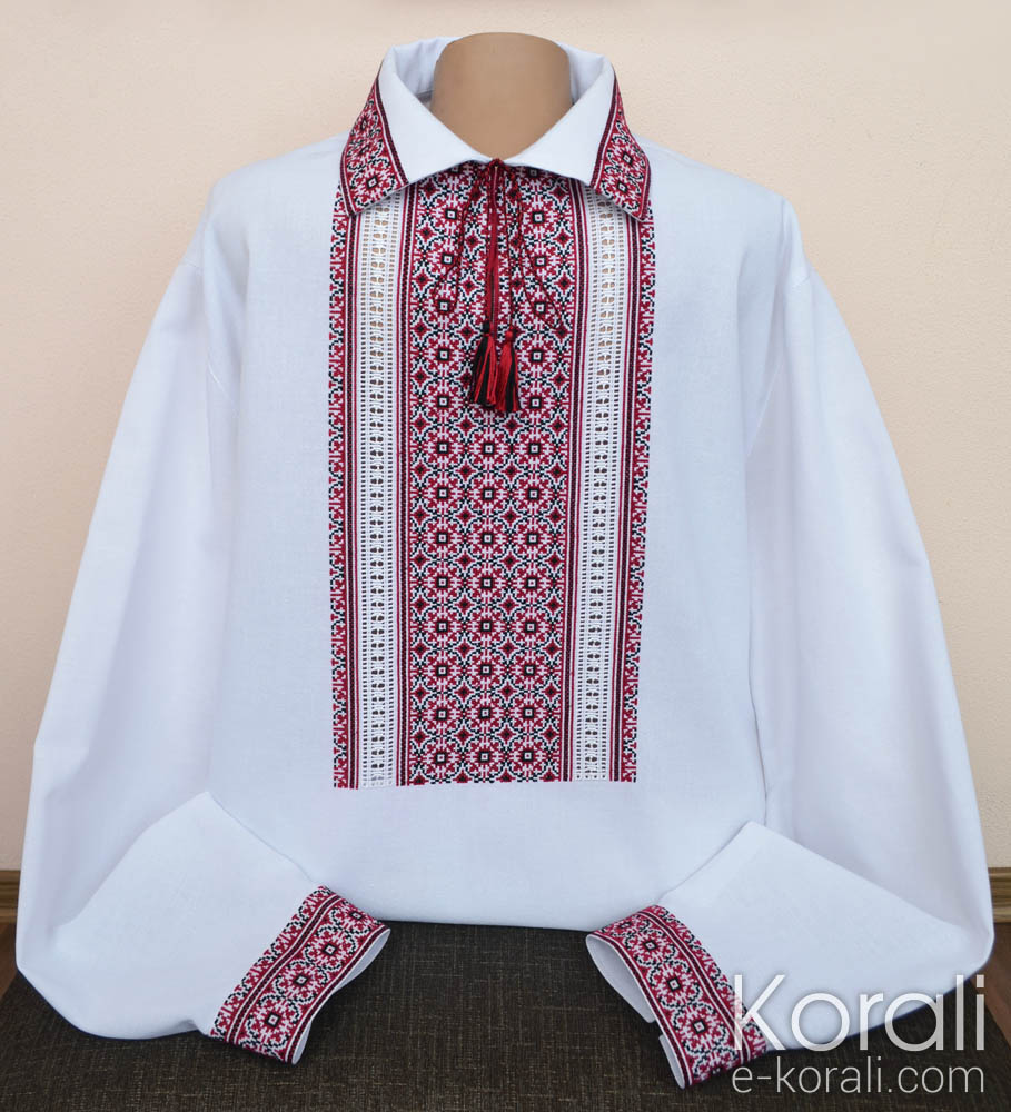 Вишиванка прямого фасону. Тканина - 62% льон, 20% поліестер, 18% бавовна. Вишивка: хрестик, мережка. Нитки: муліне DMC. Ручна робота.
