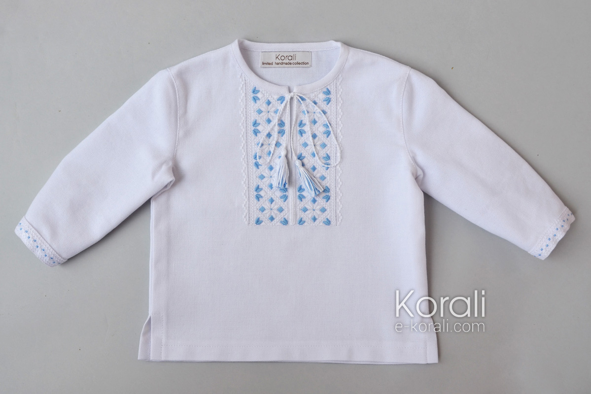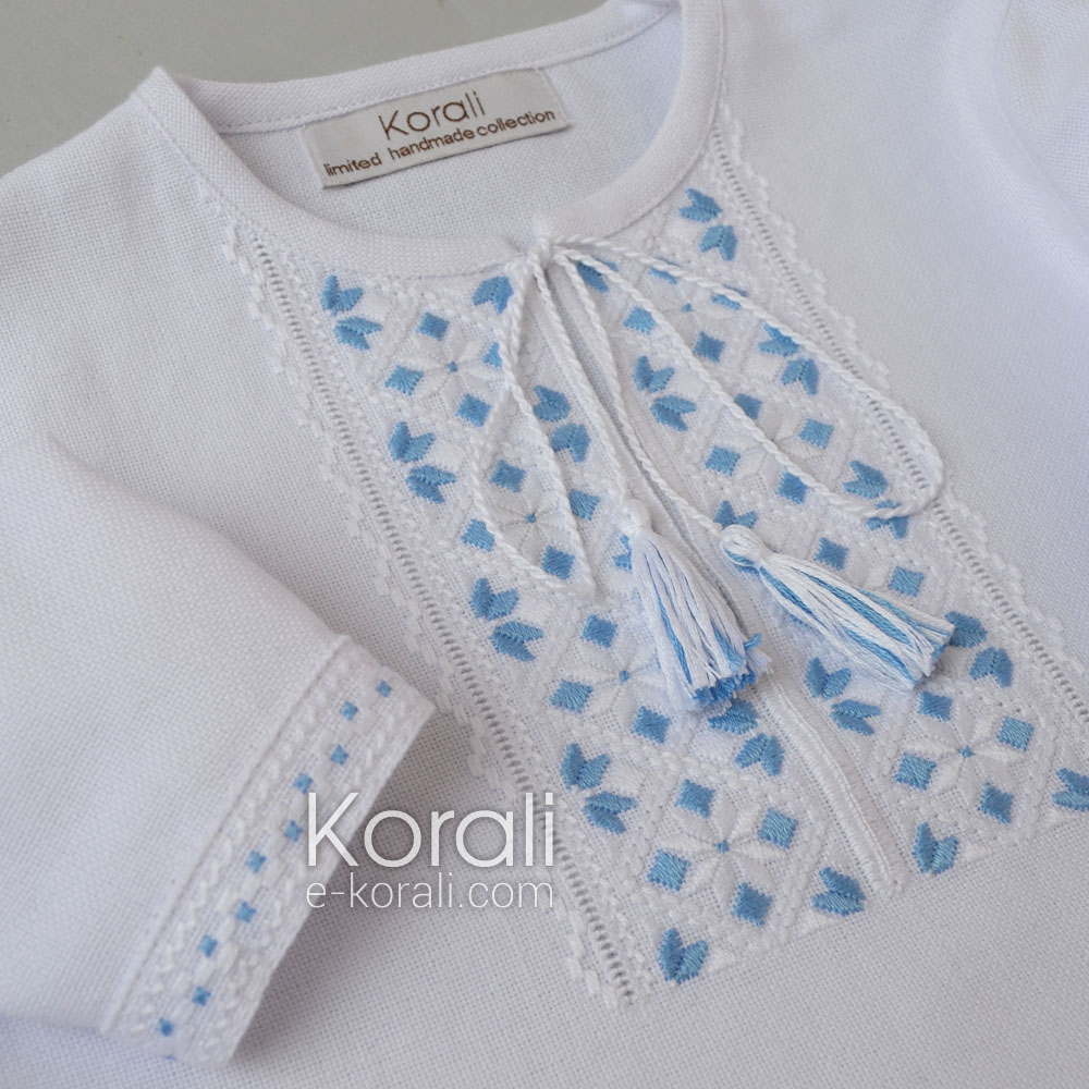 Тканина: бавовна або льон/бавовна, вишивка нитками муліне DMC. Вишито нитками муліне DMC. Застосовані техніки вишивки: пряма гладь, курячий брід, "козлик", мережка.