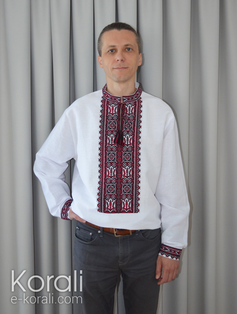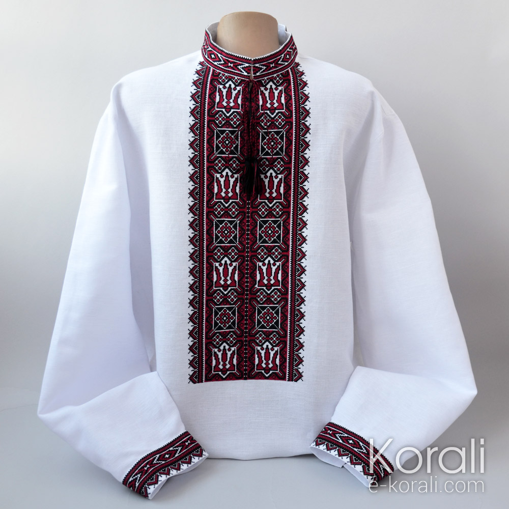 Сорочка прямого фасону з орнаментами Прикарпаття. Ручна вишивка у техніці хрестик нитками муліне DMC.