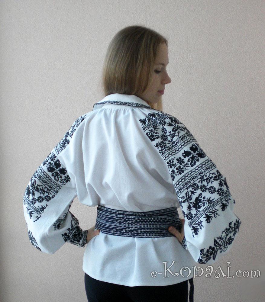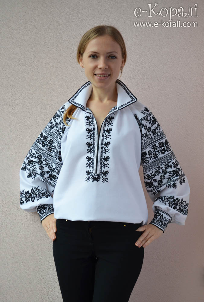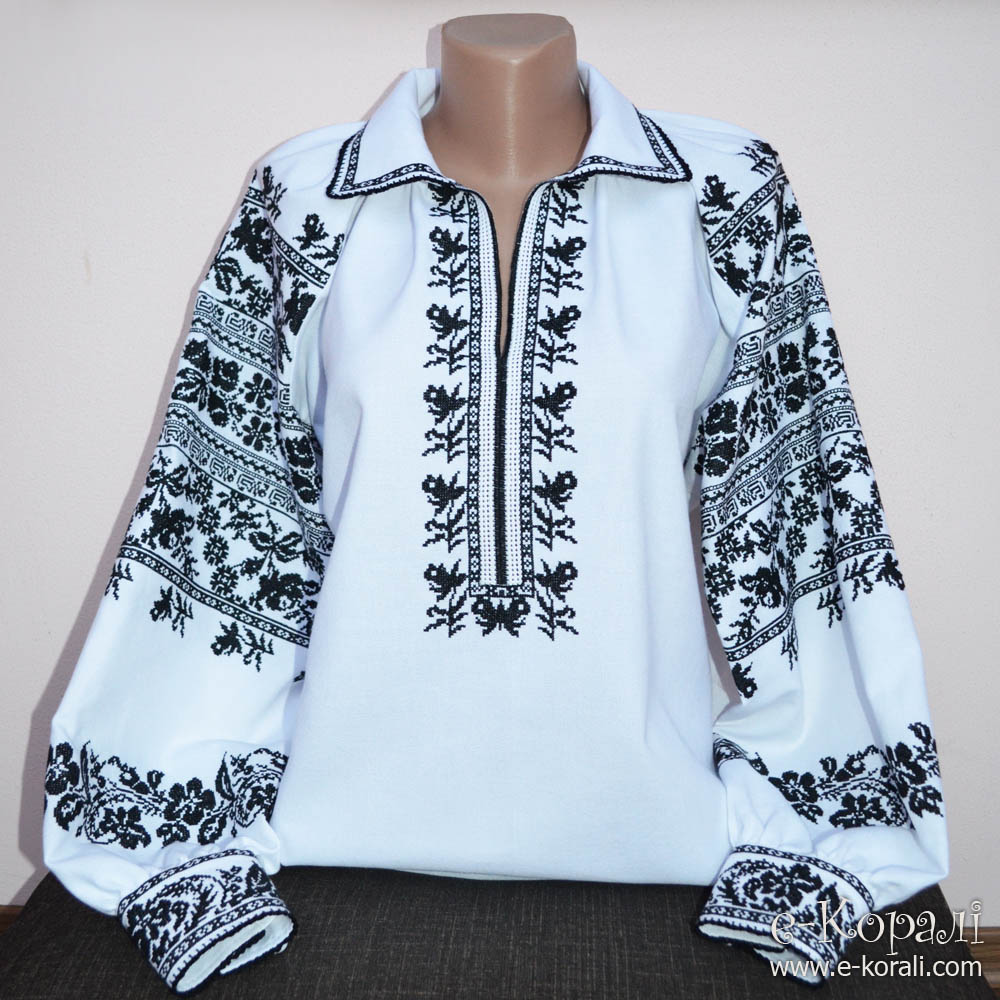 Українська жіноча вишиванка з багатим рослинним орнаментом, вишита лише чорними нитками (колір нитки можна змінювати за індивідуальним замовленням).